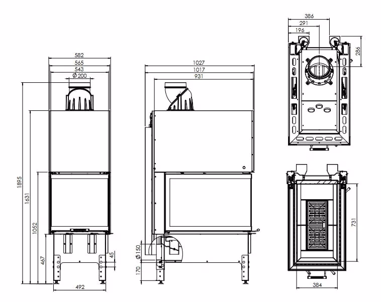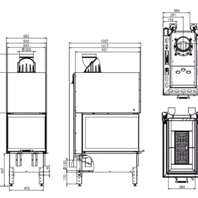 Wkład wyposażony w żeliwny czopuch Ø200 z regulacją 360 stopni, dający możliwość odprowadzania spalin w każdym kierunku.
