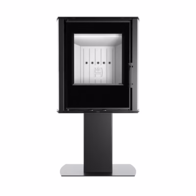 Piec wolnostojący na nodze ma wbudowaną kurtynę powietrza, która znajduje się nad drzwiczkami. Zastosowanie wysuwanego i demontowanego popielnika gwarantuje bezproblemowe czyszczenie. Natomiast solidny żeliwny ruszt zapewnia długą żywotność i wytrzymałość.
